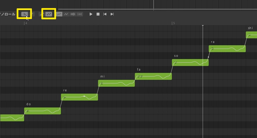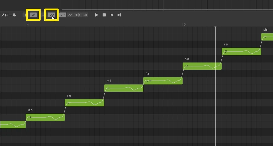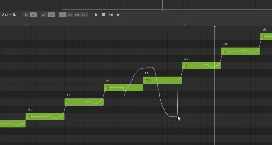 ピアノロール上をドラッグしてピッチを描きます。