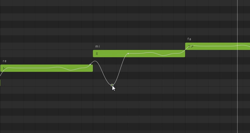 ピッチを調整したい場所にダブルクリックでポイントを打ちこみ、ドラッグすることでピッチカーブを調整することができます。